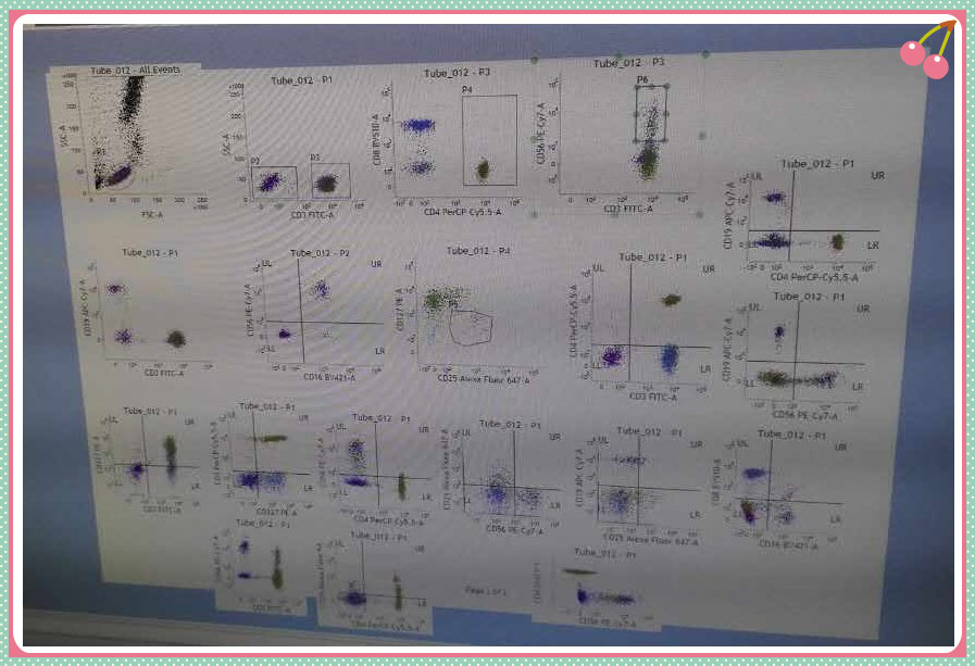 最后為流式儀器檢測,由流式儀器平臺陳老師為上機學(xué)員講解上機測試過程以及數(shù)據(jù)分析。陳老師耐心細致的講解,從儀器的初始設(shè)置到電壓補償?shù)恼{(diào)節(jié),從同型對照及陰性陽性界限的設(shè)置,FMO的劃門設(shè)置到最終的數(shù)據(jù)分析,深入淺出,循循善誘,學(xué)員們都紛紛表示收獲頗豐。