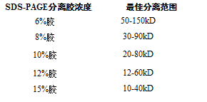 不同濃度凝膠對應(yīng)的合適分離范圍