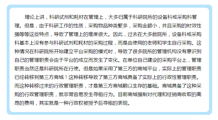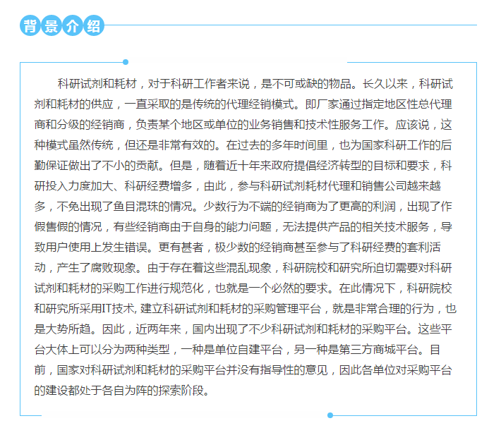 單位沒有自己出資搭建平臺,而是使用已經(jīng)存在的商業(yè)化采購平臺,所有權(quán)也不屬于單位,服務(wù)器也沒有在本單位,同時與其它多家單位共享平臺的使用。這種模式,我們稱之為第三方商城平臺。 這樣的平臺開始只在中科院系統(tǒng)出現(xiàn),現(xiàn)在已經(jīng)開始在其它大學(xué)里采用。