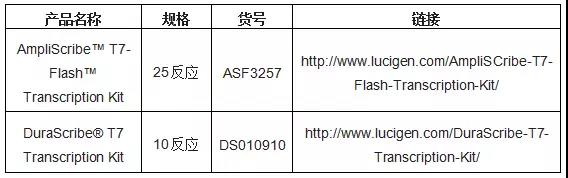 ● 提供解決IVT所面臨挑戰(zhàn)的可能方案,例如AmpliScribe? T7-Flash和DuraScribe? T7 轉(zhuǎn)錄試劑盒。