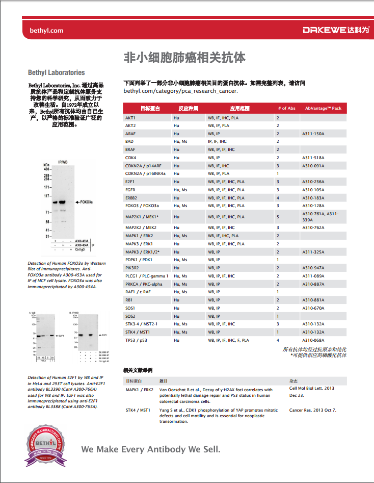 Bethyl --肺癌相關(guān)研究抗體
