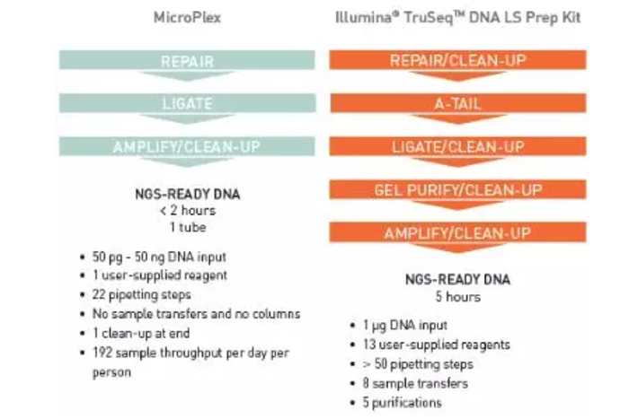 Fig.1 比較MicroPlex kit和Illumina? TruSeq? kit構建文庫的操作流程