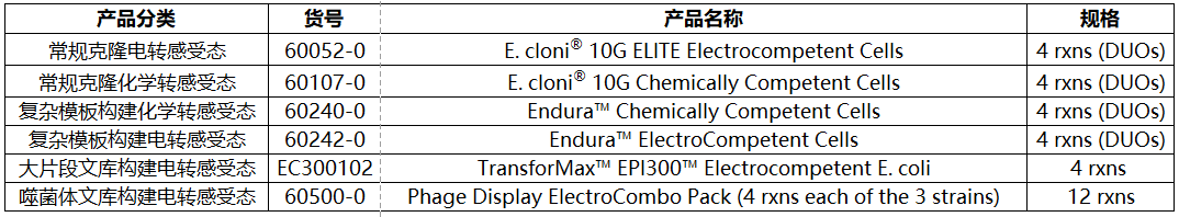 試用裝為Endura?電轉(zhuǎn)/化學(xué)轉(zhuǎn)感受態(tài)細(xì)胞,共4個(gè)反應(yīng);
