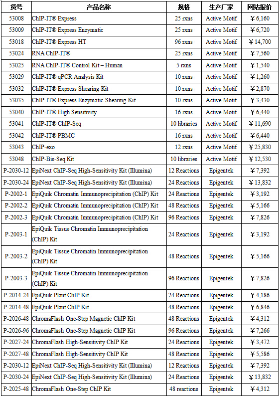 ChIP相關(guān)產(chǎn)品列表: